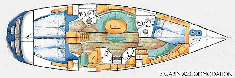 Eine große Eignerkabine im Vorschiff und 2 Doppelkabinen im Heck